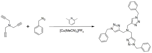 - ↑ Timothy R. Chan; Robert Hilgraf; K. Barry Sharpless & Valery V. Fokin (2004). "Polytriazoles as Copper(I)-Stabilizing Ligands in Catalysis". Org. Lett. 6 (17): 2853–2855. doi:10.1021/ol0493094. PMID 15330631.