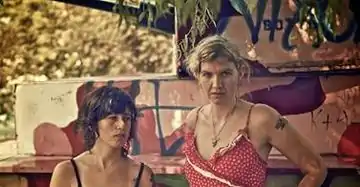 They write the music and lyrics as a duo, with diverse topics.[6] About their first album, Sadie Magazine wrote, "They share personal stories with political ramifications and engage the audience in the conversation."[8] While lyrics periodically address feminist issues, the band does not associate itself with a gendered subgenre.[20] Some lyrics are written in French and German, reflecting their respective ancestry.[2]