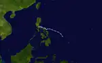 On July 19, JMA began tracking a low pressure area in the Philippine Sea, east of Mindanao.[72] The agency noted its formation into a tropical depression by July 20. JTWC then released a TCFA on the storm later that day.[73] On July 21, the system intensified into a tropical storm and was named Doksuri. The PAGASA also noted the storm's formation and locally named it Egay.[74][75] The JTWC subsequently initiated advisories on the system and classified it as 05W.[76] Doksuri slightly intensified as it tracked northwestward across the following day.[76][77][78] At 12:00 UTC on July 23, Doksuri began to rapidly intensify as it reached super typhoon status over the Philippine Sea.[79][80] Doksuri traversed through the extreme northern Philippines across the night, weakening into a typhoon and later making landfall at Camiguin Island and later in Fuga Island in Aparri, Cagayan.[81][82] Doksuri made a third landfall over Dalupiri Island on July 26, moving very slowly as it did so, dropping massive amounts of rainfall over the Ilocos Region and other parts of Northern Luzon.[83] Doksuri left the PAR at around 10:00 PHT (02:00 UTC) on July 27.[84] Doksuri then began to ensue another round of rapid intensification, forming a pinhole eye[85] Doksuri moved northwestward and subsequently made its fourth and final landfall in Jinjiang, Fujian, with two-minute sustained winds of 180 km/h (50 m/s) on July 28.[86] Doksuri rapidly weakened once inland and dissipated shortly thereafter.[87]