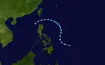 This tropical cyclone formed on August 27 in the Philippine Sea, and strengthened as it moved westward into the southern Philippines, becoming a typhoon on August 31. Typhoon Ike caused extreme wind and flooding damage when it crossed the Philippines, resulting in 1492 fatalities,[14] one of the Philippines' worst natural disaster in modern times, and its worst typhoon since Amy struck the archipelago in 1951. A total of 200,000 to 480,000 were left homeless. Emerging from the Philippines as a strong tropical storm, Ike restrengthened as it tracked northwest through the South China Sea across northeast Hainan Island. Weakening back into a tropical storm, Ike moving inland into mainland China. In Hong Kong, winds gusted to 49 knots (91 km/h) at Tate's Cairn. Extensive crop damage was experienced in southern China, with Ike becoming the most significant tropical cyclone to strike Guangxi since 1954. Total damage was reportedly US$111 million (1984 dollars).[1] The name Ike was retired after this season.[15]