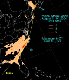 - 1 2 Hydrometeorological Prediction Center (2006). "Rainfall Summary for Tropical Storm Bonnie". Retrieved May 18, 2006.