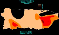 - ↑ Rosa, Bárbara J. F.; Cancel, Alex F.; Saavedra, Maelo V.; Doll, Sara J. (2011-08-05). "Evalúan las zonas afectadas por Emily". Primera Hora (in Spanish). Grupo Ferré-Rangel. Retrieved 2011-08-05.