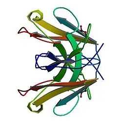 - 1 2 Wiesmann C, Ultsch MH, Bass SH, de Vos AM (September 1999). "Crystal structure of nerve growth factor in complex with the ligand-binding domain of the TrkA receptor". Nature. 401 (6749): 184–8. Bibcode:1999Natur.401..184W. doi:10.1038/43705. PMID 10490030. S2CID 4337786.