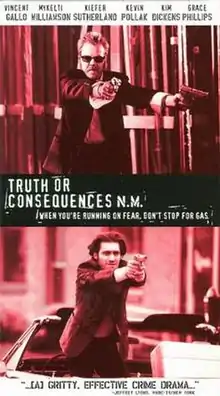 Truth or Consequences, N.M. is a 1997 American neo-noir film directed by Kiefer Sutherland starring Sutherland, Vincent Gallo, Mykelti Williamson, Kevin Pollak, Max Perlich, Rod Steiger and Kim Dickens among others.[2]