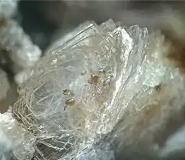 - 1 2 3 4 5 6 7 8 9 Subbotin, V. V.; et., al. "Tumchaite Na2(Zr,Sn)Si4O11.H2O - A new mineral from carbonatites of the Vuoriyarvi alkali-ultrabasic massif, Murmansk Region, Russia" (PDF). The American Mineralogist. 85: 1516–1520. doi:10.2138/am-2000-1024. S2CID 53325912.