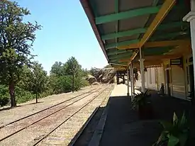 The Tumut line was suspended after flooding in 1984, and part of the alignment has been destroyed by Hume Highway upgrading works.[20] The substantial Gundagai railway station was restored in the 1990s,[21] and is the longest timber railway station in New South Wales.[22]