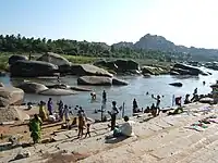 The places on the banks of the Tungabhadra River where pilgrims visit famous temples are in the Alampur, Jogulamba Gadwal district of Telangana and Kurnool district of Andhra Pradesh. The notable places are Hospet, Hampi, Kampli, Mantralayam, Kurnool, Alampur.[3][4]
