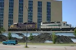 ![]() A Twin Cities and Western Railroad train waits in downtown Saint Paul, Minnesota. | |