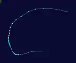 | Peak intensity | 55 km/h (35 mph) (10-min); 1002 hPa (mbar) |