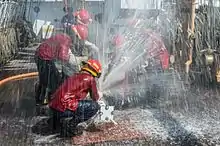Coast Guard Academy cadets routinely take part in damage control training on board Eagle, learning to make any repairs afloat, including patching leaking pipes