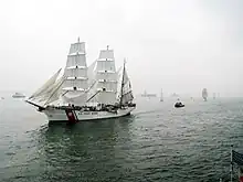 USCGC Eagle leading a parade of ships in New York on the 4th of July, 2000