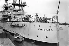 ![]() USS Chicago (CA-29), underway off New York City, during the fleet review on 31 May 1934. | |