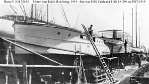 Edith II was built by the Great Lakes Boat Building Corporation at Milwaukee, Wisconsin, as a civilian motorboat of the same name in 1917. The United States Navy acquired her from her owner, Carnot M. Ward of Whippany, New Jersey, in May 1917 for World War I service as a patrol vessel and commissioned her as USS Edith II (SP-296). In 1918, her name was changed to USS SP-296.