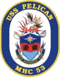 USS Pelican (MHC-53) was the third Osprey-class coastal minehunter and the third ship in the Navy to bear the name of the bird. From 1 January 1997 on, Pelican was part of the Naval Reserve Force. In that role the ship was used as training platform for naval reservists. Both decommissioned and stricken from the Navy List on 16 March 2007, Pelican was transferred to the Hellenic Navy the same day. There she was recommissioned as Evniki.
