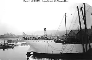 ![]() SS Western Hope just after launching at the J. F. Duthie and Company shipyard in Seattle, Washington, on 29 July 1918. | |