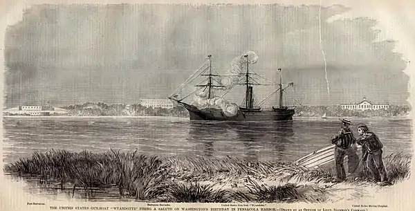 Wyandotte took part in the nighttime reinforcement of Fort Pickens on 12 April 1861, the day the American Civil War began with the Confederate shelling of Fort Sumter in South Carolina. With the outbreak of hostilities, Wyandotte joined the Gulf Blockading Squadron on 17 May 1861. After carrying out patrol and transport assignments, she proceeded to the New York Navy Yard in Brooklyn, New York, for major repairs, arriving there on 23 August 1861.