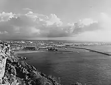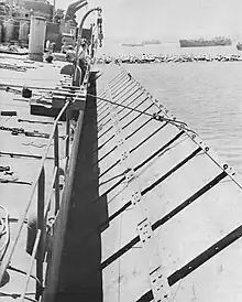Amphibious Training Bases at and around Oran started in May 1943 under the reverse Lend-Lease with Free France. At the same time, an Amphibious Training Base opened at Ténès and Béni Saf Algeria. After the Tunisian campaign, Oran supported the operation of the Amphibious Training Bases at Bizerte, Tunis, and Ferryville in Tunisia. The towns of Cherchel, Bone, and Mostaganem east of Oran, and Nemours west of Oran became troop staging for upcoming Allied invasions, became the scene of practice invasions. Detachments from the 54th, 70th, and 120th Construction Battalions were responsible for whatever naval establishments were required, but these towns required little in the way of installations.[19][20] A ship's salvage unit, a naval radio station, and a fuel depot were established in Algiers, which was also the site of the headquarters of Vice Admiral H.K. Hewitt, USN, Commander Naval Forces in Northwest African Waters. The two most common amphibious ships used at the base were Landing Ship, Tank (LST), Landing Craft Infantry (LCI), LCP boats, Landing craft tank and Landing Craft Mechanized boats.[1][21][22][23] The lessons of North Africa helped in improving the future landing and battles of World War II.[24]