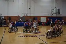 The Lady Movin' Mavs were initially a sports club at UTA and transitioned to full intercollegiate team status once sufficient funds had been raised.[7] It plays under the auspices of the National Wheelchair Basketball Association (NWBA), which organizes intercollegiate wheelchair basketball tournaments across the United States. During the 2014–15 season, the team's roster grew from five to nine players, which allowed the team greater flexibility with strategy and opportunities to rest players.[8] That season, the team played in the National Intercollegiate Wheelchair Basketball Tournament (NIWBT), where it lost to the University of Illinois in its first game and then lost to the University of Wisconsin–Whitewater in the third-place game.[9]