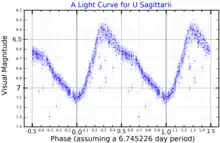 A light curve for U Sagittarii, plotted from ASAS data[12]