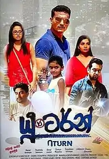 U Turn (Sinhala: යූ-ටර්න්) is a 2019 Sri Lankan Sinhala mystery thriller film directed by acclaimed cinematographer Channa Deshapriya in his directorial debut.[1][2] The movie is produced by Maharaja Entertainments as a Sirasa Movie.[3] The movie features the stars Hemal Ranasinghe Thumindu Dodantenna, Bimal Jayakody, Gamya Wijayadasa with the debut actress Chanu Dissanayake in the lead roles.[4] The music of the film is composed by Chinthaka Jayakody with Bharadwaj composing music for the song.