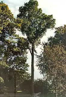 One tree supplied by Späth was planted in 1898 as U. montana fastigiata glabra at the Dominion Arboretum, Ottawa, Canada.[7] Three were supplied to the Royal Botanic Garden Edinburgh in 1902. One, in the Garden proper (tree C2715), was relabelled by Melville in 1958 U. glabra Huds. × U. carpinifolia [:U. minor ] × U. plotii [:U. minor 'Plotii' ];[5][8] it survived till the 1990s. Others may survive in Edinburgh, as it was the practice of the Garden to distribute trees about the city (viz. the Wentworth Elm);[9] the current list of Living Accessions held in the Garden per se does not list the plant.[10]