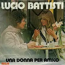 "Una donna per amico" (Italian for "A Woman as a Friend") is a song composed by Lucio Battisti and Mogol, and performed by Lucio Battisti. It was released as a single in October 1978, with "Nessun dolore" as B-side.[1] The single peaked at first place fourteen consecutive weeks on the Italian hit parade between November 1978 and February 1979.[2] It was the second most sold single of the year in Italy, behind Bee Gees' "Stayin' Alive".[3]