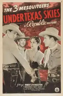 Under Texas Skies is a 1940 American Western "Three Mesquiteers" B-movie[1] directed by George Sherman and starring Robert Livingston, Bob Steele, and starring Rufe Davis. It was produced and released by Republic Pictures.