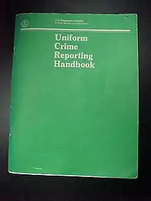 Frequently referred to as The Green Book due to its green cover, the Uniform Crime Reporting Handbook is a publication of the United States Department of Justice and the Federal Bureau of Investigation. The manual instructs law enforcement officers on the proper method for filling out the monthly Uniform Crime Reports returns for police records and statistics.