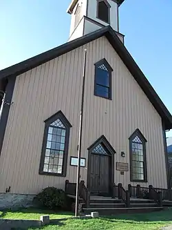 The church was built in 1853 for what was a mixed congregation, and was eventually also used by Baptist and Seventh-day Adventist congregations in the 19th century. It fell into disuse during the American Civil War, and was again revived as a non-denominational summer church in the 1870s. Although other Gothic Revival churches exist in the state, there are few that are built on a modest scale out of wood, and the others that survive in good condition were architect designed.[2]