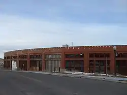 The Union Pacific Railroad Complex in Evanston, Wyoming, was built to serve the Union Pacific Railroad main line running through Evanston. The complex's brick buildings were built in 1912–13, with frame buildings spanning the period from 1871 to the 1920s. The complex features a roundhouse with 27 stalls built during the 1912 improvement phase, replacing an earlier roundhouse built in 1871. The complex was the chief service point on the UP main line between Ogden, Utah, and Green River, Wyoming.[2]