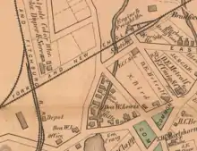 The Walpole Railroad was chartered on April 16, 1846 to run from Walpole to Dedham, where it would meet the Boston and Providence Railroad's Dedham Branch. The Norfolk County Railroad was chartered on April 24, 1847 to run from Walpole to Blackstone; it absorbed the unbuilt Walpole Railroad that July. The Norfolk County Railroad opened from Dedham to Walpole on April 23, 1849, and to Blackstone on May 16.[2] The station was located on East Street at Glenwood Avenue, just north of the town common.[5][6]