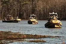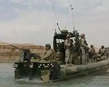 Following several months of training in combat skills, SURC operations, and cultural and language skills, RIVRON 1 Advance Party deployed to Iraq on February 13, 2007, followed by RIVRON 1 Main Body deployed March 8. RIVRON 1 conducted integrated maritime combat operations with Marines, Soldiers, Coalition Forces, Iraqi Army, and Iraqi Police.[4][5] RIVRON 1 assumed patrol duties around Haditha Dam from the Marine Corps, who had previously been performing this task.[6] On 1 August 2012, RIVRON 1 was decommissioned. It was replaced by Coastal Riverine Squadron (CORIVRON) 4, which combined RIVRON 1 with Maritime Expeditionary Security Squadron (MSRON) 4.[7] This reorganization combined navy small boat units to provide both offensive and defensive force protection.[7]