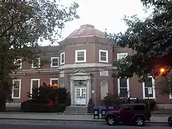 US Post Office-Far Rockaway is a historic post office building located at Far Rockaway in Queens County, New York, United States. It was built in 1935, and is one of six post offices in New York State designed by architect Eric Kebbon as a consultant to the Office of the Supervising Architect. It is a two-story brick building with limestone trim and a low granite base in the Colonial Revival style. Its main facade features a centrally placed polygonal shaped frontispiece with a rounded dome inspired by Thomas Jefferson's Monticello. It also has a grand entrance vestibule.[3]