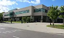 The Terrence Donnelly Health Sciences Complex is the University of Toronto Mississauga's newest educational building. The new building houses the Mississauga Academy of Medicine, the department of Biomedical Communications and the department of Anthropology and Forensics. The TDHSC building was designed by Kongats Architects Toronto. Funding for the new building was provided by Carlo Fidani, Terrence Donnelly, and the Provincial Government.[39] Carlo Fidani donated $10 million for building costs, scholarships, and a chair in family and community medicine. Terrence Donnelly donated $12 million to building costs and scholarships. Capital funding for the project of $30.3 million was provided by the Provincial Government. The construction for the 5,960 square meter (64,153 square feet), four-story building began the summer of 2009.[40] The building officially opened on November 1, 2011.[41]