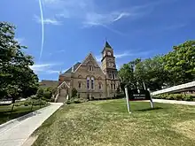 Music Hall, initially named Assembly Hall, was built in 1878 in a Gothic Revival style. It was designed by architect David R. Jones of Madison to house an 800-seat auditorium, a library, and a clock tower. Dedicated on March 2, 1880, the building originally held conventions, dances, and commencement ceremonies, along with its primary purpose of a library. After the library moved to a different building on campus, a portion of the hall was assigned to the School of Music in 1900. Shortly after renovations in the early 1900s, the building was officially named Music Hall in 1910. It remains an important music venue and is home to the university opera.[3] This building also is home to the Department of Urban and Regional Planning, with part of the building being used as office space and classrooms.