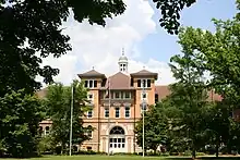 The iconic cupola atop the "Old Main" building is the current logo for the university.[22] Built in 1894, it was the first building on campus.[23] It was designed by Dwight H. Perkins of Perkins and Selby of Chicago in the Renaissance Revival Style, and is listed on the National Register of Historic Places.[23][24] It currently houses University Administration. [25]