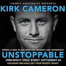 Unstoppable is a 2013 American quasi documentary film hosted by Kirk Cameron. Directed by Darren Doane. The film was made in partnership with Liberty University and was released for a one-night-only screening in theaters on September 24, 2013.