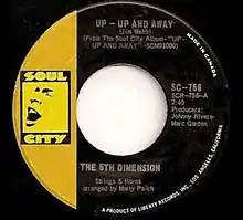 "Up, Up and Away" is a 1967 song written by Jimmy Webb and recorded (as "Up–Up and Away") by US soul-pop act the 5th Dimension with backing from members of The Wrecking Crew.[1] Their original version reached no. 7 on Billboard's Hot 100 in July 1967 and no. 9 on its Easy Listening chart,[2] and number one in both Canada and Australia. In 1999, Webb's song placed 43 on BMI's "Top 100 Songs of the Century".[3]