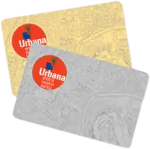 In June 2012, Urbana was introduced as the library card of Ljubljana City Library (Mestna knjižnica Ljubljana).[4] It fully replaced old library cards by March 2013. Both types of Urbana can be used for library membership. When registering for membership, a member ID number is printed to the back of the card. If the yellow card is used, member's name is also added to the back of the card, however the card is still transferable for use on the buses.