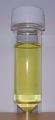 Urine varies in appearance, depending principally upon a body's level of hydration, interactions with drugs, compounds and pigments or dyes found in food, or diseases.[5] Normally, urine is a transparent solution ranging from colorless to amber, but is usually a pale yellow.[5] Usually urination color comes primarily from the presence of urobilin.[8] Urobilin is a final waste product resulting from the breakdown of heme from hemoglobin during the destruction of aging blood cells.
