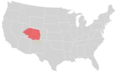 Ute (/ˈjt/ YOOT)[2] is a dialect of the Colorado River Numic language, spoken by the Ute people. Speakers primarily live on three reservations: Uintah-Ouray (or Northern Ute) in northeastern Utah, Southern Ute in southwestern Colorado, and Ute Mountain in southwestern Colorado and southeastern Utah.[3] Ute is part of the Numic branch of the Uto-Aztecan language family. Other dialects in this dialect chain are Chemehuevi and Southern Paiute. As of 2010, there were 1,640 speakers combined of all three dialects Colorado River Numic.[4] Ute's parent language, Colorado River Numic, is classified as a threatened language, although there are tribally-sponsored language revitalization programs for the dialect.[4]