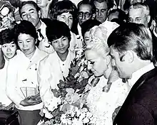 Shortly before the end of the 1968 Olympics, Čáslavská married runner Josef Odložil, who had been a silver medalist at the 1964 Olympics in Tokyo. The ceremony, which took place at the Mexico City Cathedral, drew a crowd of thousands.[8] They had a daughter, Radka, and a son, Martin.[2] The couple divorced in 1987.[21] In 1993, her son and ex-husband were involved in an altercation with Martin allegedly punching Josef; he fell to the floor and struck his head, leading to his death. Čáslavská became depressed and was rarely seen in public afterwards.[10] Čáslavská eventually overcame her depression (which she had been fighting for about 15 years), and returned to both social and sports lives, coaching younger gymnasts.