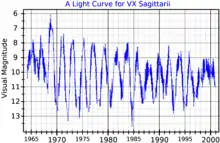 A visual band light curve for VX Sagittarii, plotted from AAVSO data[9]