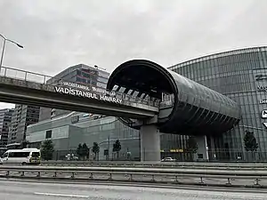 Vadistanbul is an elevated station and the western terminus of the F3 funicular line of the Istanbul Metro.[2] The station consists of a bay platform with one track inside a Spheroid glass structure within the Vadistanbul Shopping Center. The station is the first and only rapid transit station in Turkey to be directly connected to a privately owned structure.[3] Trains operate to Seyrantepe in seven minute intervals daily between 8:00 and 22:00.