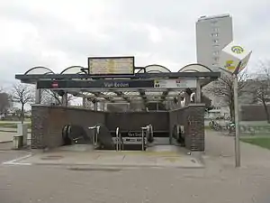 Frederik van Eeden (also known by the shorthand Van Eeden) is an underground station in the Antwerp premetro network located in the Linkeroever suburb on the left bank of the river Scheldt. The station was opened on 21 September 1990, the same time as the Brabotunnel, linking the station with Groenplaats station and allowing trams in the premetro network to cross the river Scheldt.[1] The station is located directly underneath the F. Van Eedenplein, named after the writer of the same name.[2]