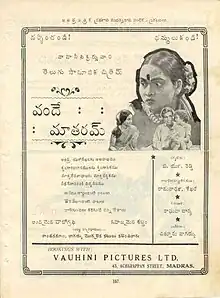 Vande Mataram (transl.Hail to the mother![1]) is a 1939 Indian Telugu-language film directed by B. N. Reddy and starring V. Nagayya and Kanchanamala.[2] The story is based on Reddy's short story Mangala Sutra. The film was a box office success.[1][3][4]