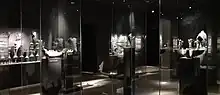 During the third phase at Vani (c. 350–250 BC),[11] Changes in the material culture are prominent. The principal sanctuary on the hilltop had been destroyed and burnt and the ritual ditches had ceased to function; new stone buildings appear including a circuit wall. In addition, traditional Colchis pottery gives way to new forms, notably pear-shaped jugs with red paint on a light ground, familiar in eastern Georgia, anciently known as Iberia, and Greek influence becomes more prominent on the goldwork. Burial in storage-jars becomes the predominant mode.[12] An important find is a 4th-century BC signet-ring bearing, in Greek letters, the name of "Dedatos",[13] probably a local ruler.[14] Lordkipanidze assumes some of these changes may reflect the infiltration of tribes from Iberia, which at that time experienced urbanization, state formation, and expansion.[15][13]