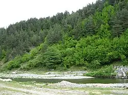 Varbitsa (Bulgarian: Върбица [vɐrˈbit͡sɐ]) is a river in the Eastern Rhodope mountains in Bulgaria. The Varbitsa river, a tributary to the Arda, the main river of the Rhodope Mountains, runs through 8 municipalities, 6 of them within the region of Kardzhali and 2 in the region of Smolyan. It is the lifeline of the area, with industrial, drinking and irrigation water coming out, and refuse, raw sewage and industrial waste going in. That the Varbitsa starts below an officially “safe” tailings reservoir above the town of Zlatograd has been of concern, as has the fact that Zlatograd's rubbish dump is next to the river, and begins to enter into its waters as it expands. The Varbitsa is Bulgaria's most temperamental river, with up to 5,000 times difference in water volume between spring highs and autumn lows, with frequent massive flooding and erosion as a result.
