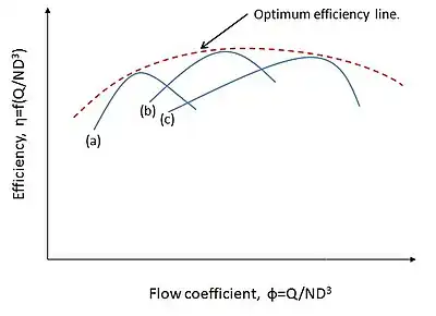 Thus, efficiency in a variable geometry pump is a function of both flow coefficient and energy transfer coefficient.