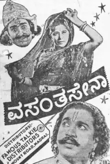 Vasantasena is a 1941 Indian Kannada-language film directed by Ramayyar Shirur. It stars Lakshmi Bai, Subbayya Naidu and Nagendra Rao in lead roles. The film is based on the Sanskrit play, Mṛcchakatika by Śūdraka.[1]